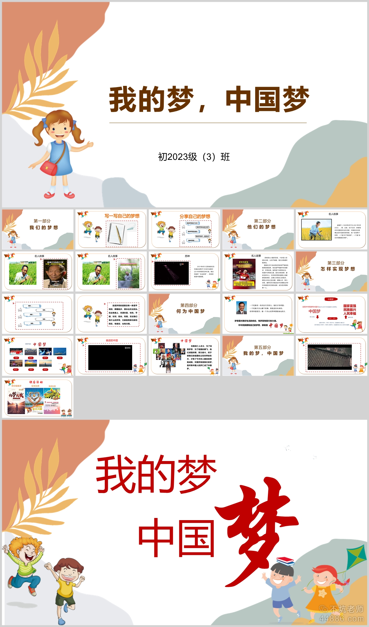 习近平总书记的“中国梦”的提出在很大程度上激发了人们对于渐渐遗忘的“梦想”一词的讨论,这股春风也不例外的应吹进学生的心里。通过本节班会课,学生更清晰的认识了什么是梦想,明白了何为中国梦,中国梦与自身的关系,人生因为有梦想而显得愈发的美好,青少年的梦想尤其是这样,它会激励青少年在今后的学习生活中努力奋进,为梦想努力的过程是痛并快乐着的,是化茧成蝶的必经阶段,正是每一个中国人的梦想汇聚而成的我们中华民族的伟大复兴之梦想。