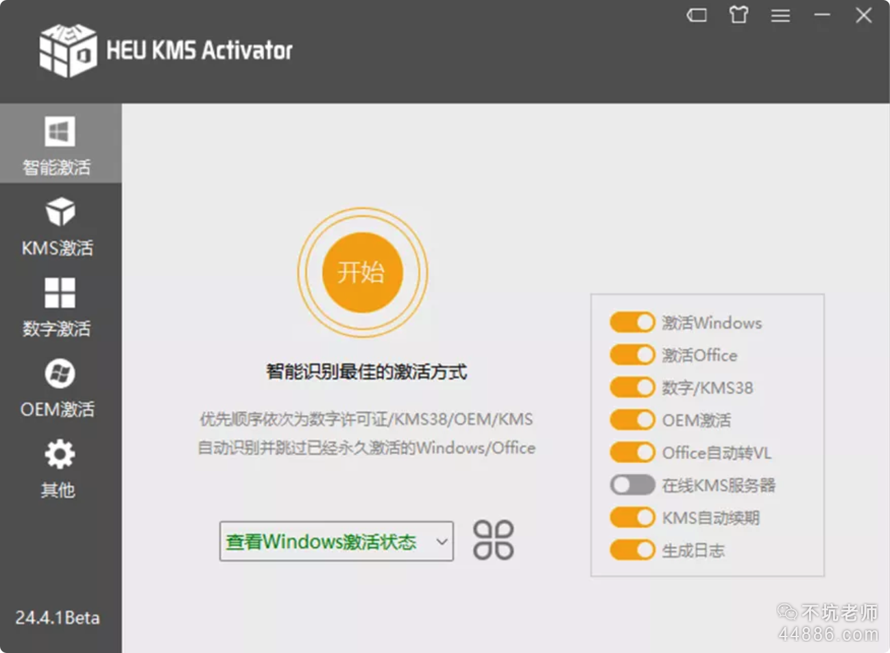 最新版2.7.2支持所有版本Windows和Office的KMS激活。