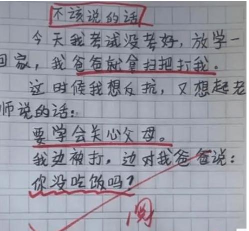 老师看完捧腹大笑,家长气得追着打,其实无论怎样,在小学生们的心中,爸爸都是很伟大的,希望在家庭教育中,父亲也要承担起重任,能够做好榜样和表率。