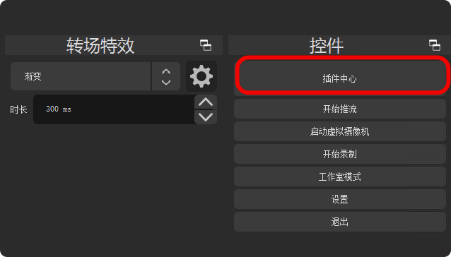 安装会,在obs右下角“开始推流”的上方,多出来一个“插件中心”,点一下,开启新世界的大门!