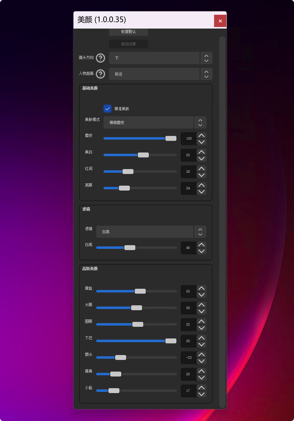 如果你看不到这个美颜的控制界面,在这儿打开: