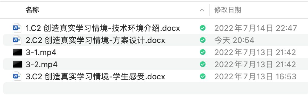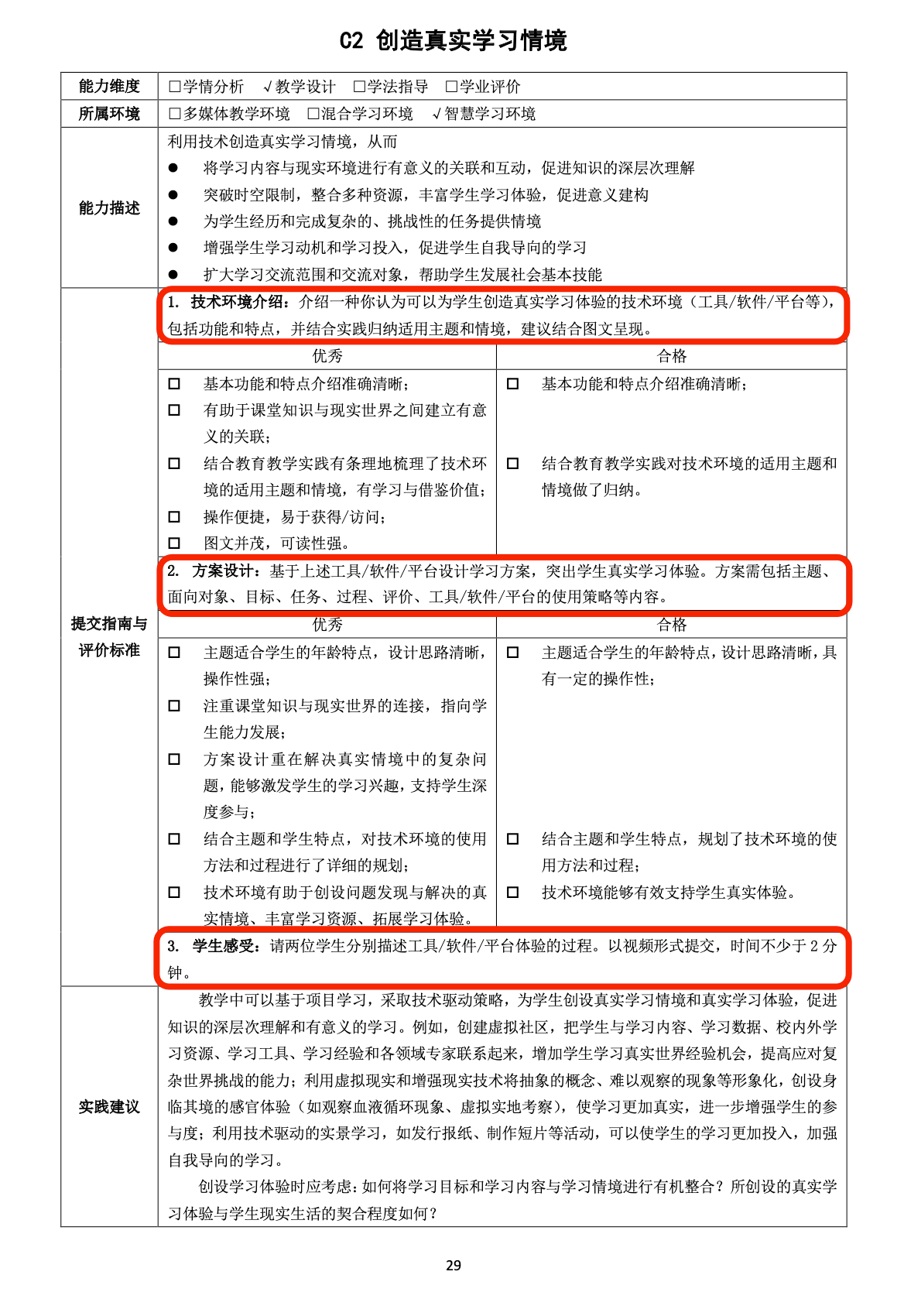 C2.创造真实学习情境,需要三个作业:1.技术环境说明,2.方案设计,3.学生的感受。
