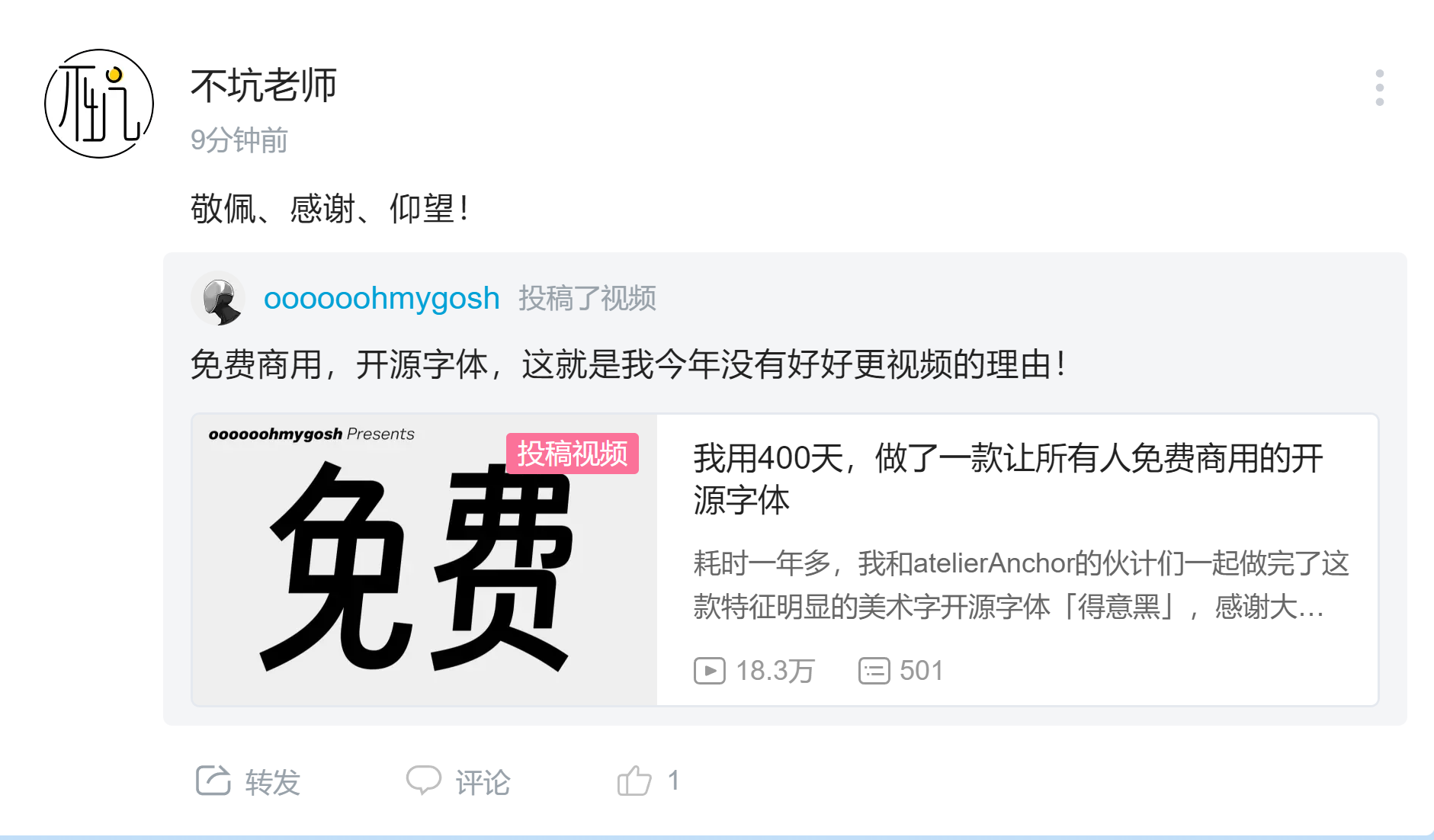 所以,如果有人免费制作出一套字体,并且允许免费商用,还把字体开源的话;那这个人真的太无私了!