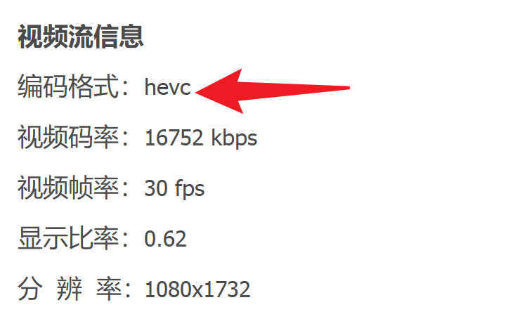 编码格式是hevc,也就是传说中的H.265,而目前兼容性最好的仍然是H.264。