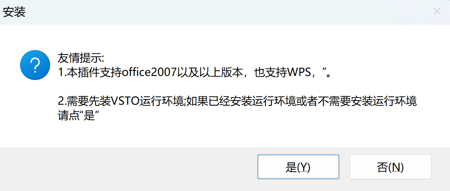 此插件依赖.Net 4.5 和 VS tools for Office 4.0 Runtime,第二个运行环境,是所有VSTO类插件都需要的,之前很多小伙伴不理解。