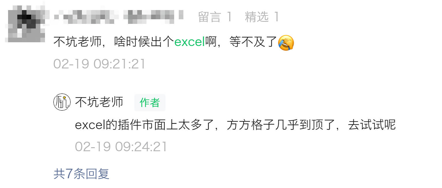 自“不坑盒子”word插件发布发来,公众号、抖音下的评论,有很多小伙伴求Excel插件。