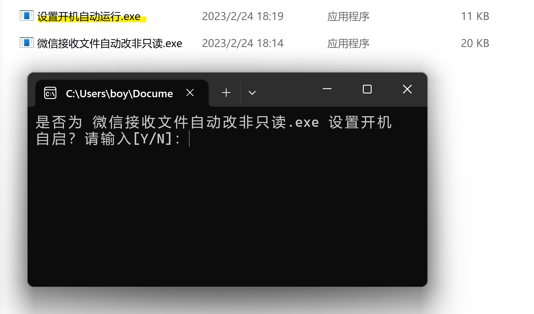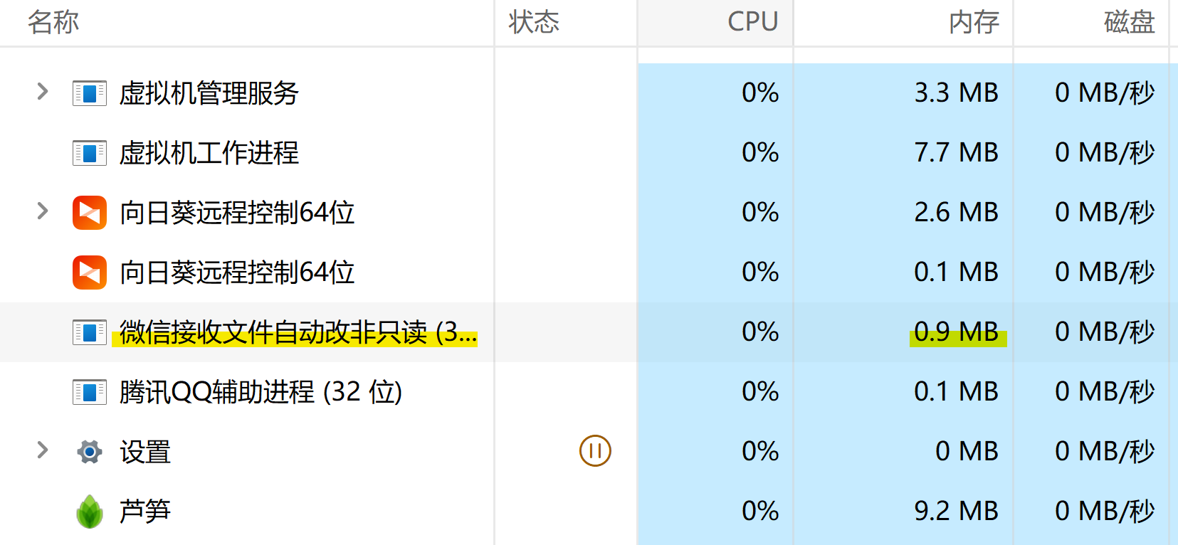 所以,它的原理是:在后台一直运行着一个程序,等你微信接收到文档,这个程序自动帮你把“只读”前面的勾去掉。