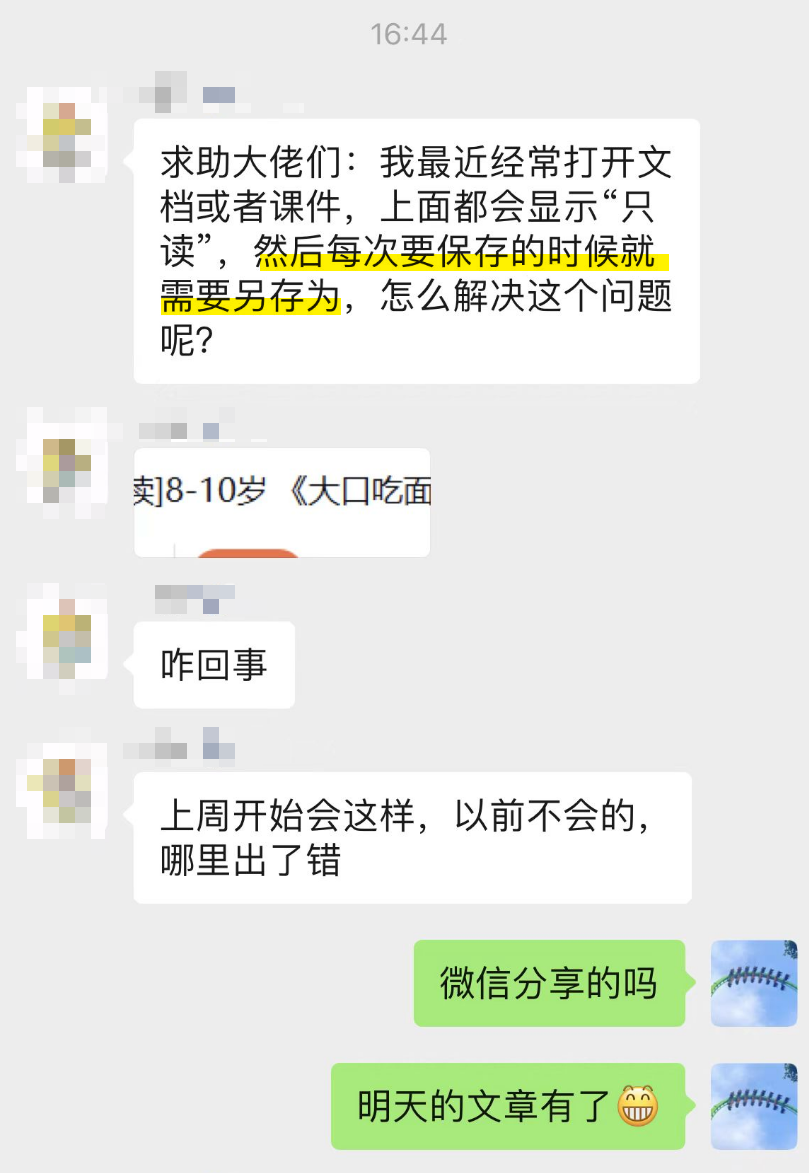 很多小伙们表示:这太不方便了,接收个文件还得“另存为”一次才能编辑。