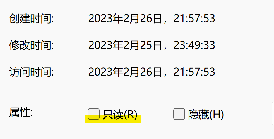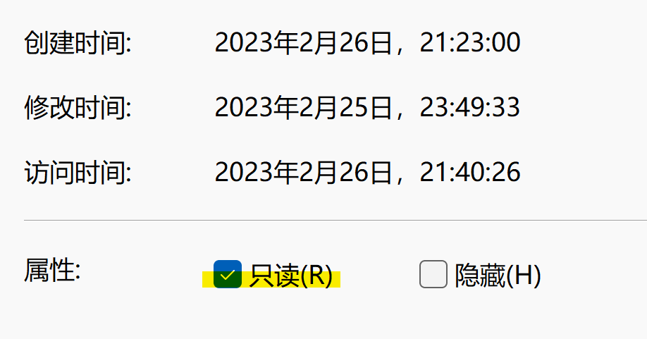 右键定位到文件后,查看它的属性就能看到:接收到的文件,“只读”被打上了勾。