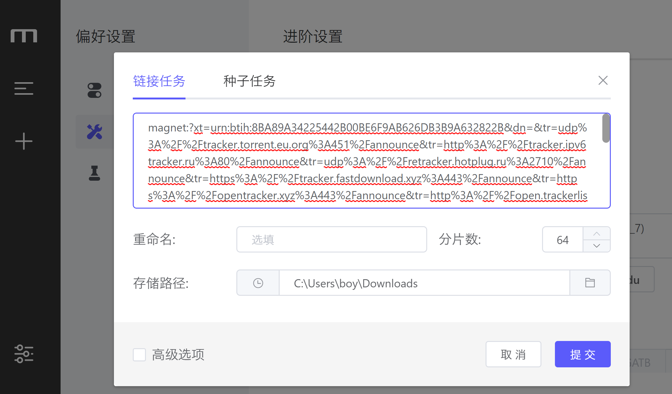 当我们在网页上点击“磁力链接”的时候,能自动唤起这个下载软件。