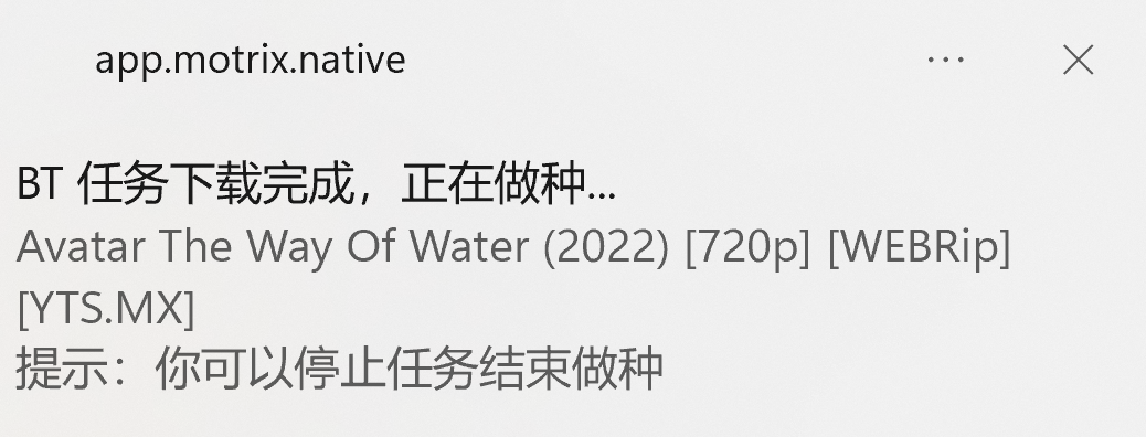 比如,刚刚我下载的那个《阿凡达》,下载完后会看到这样的提示。