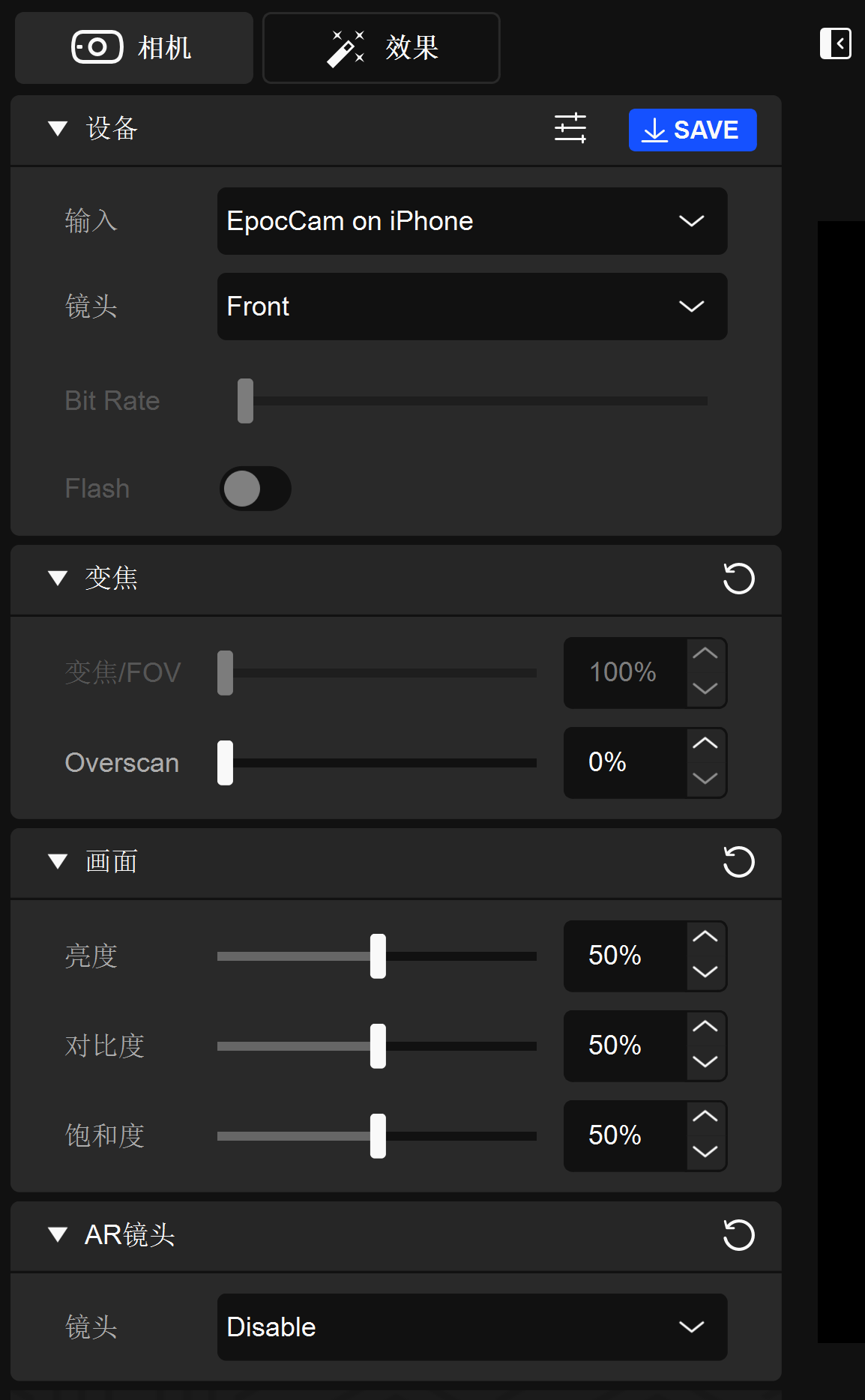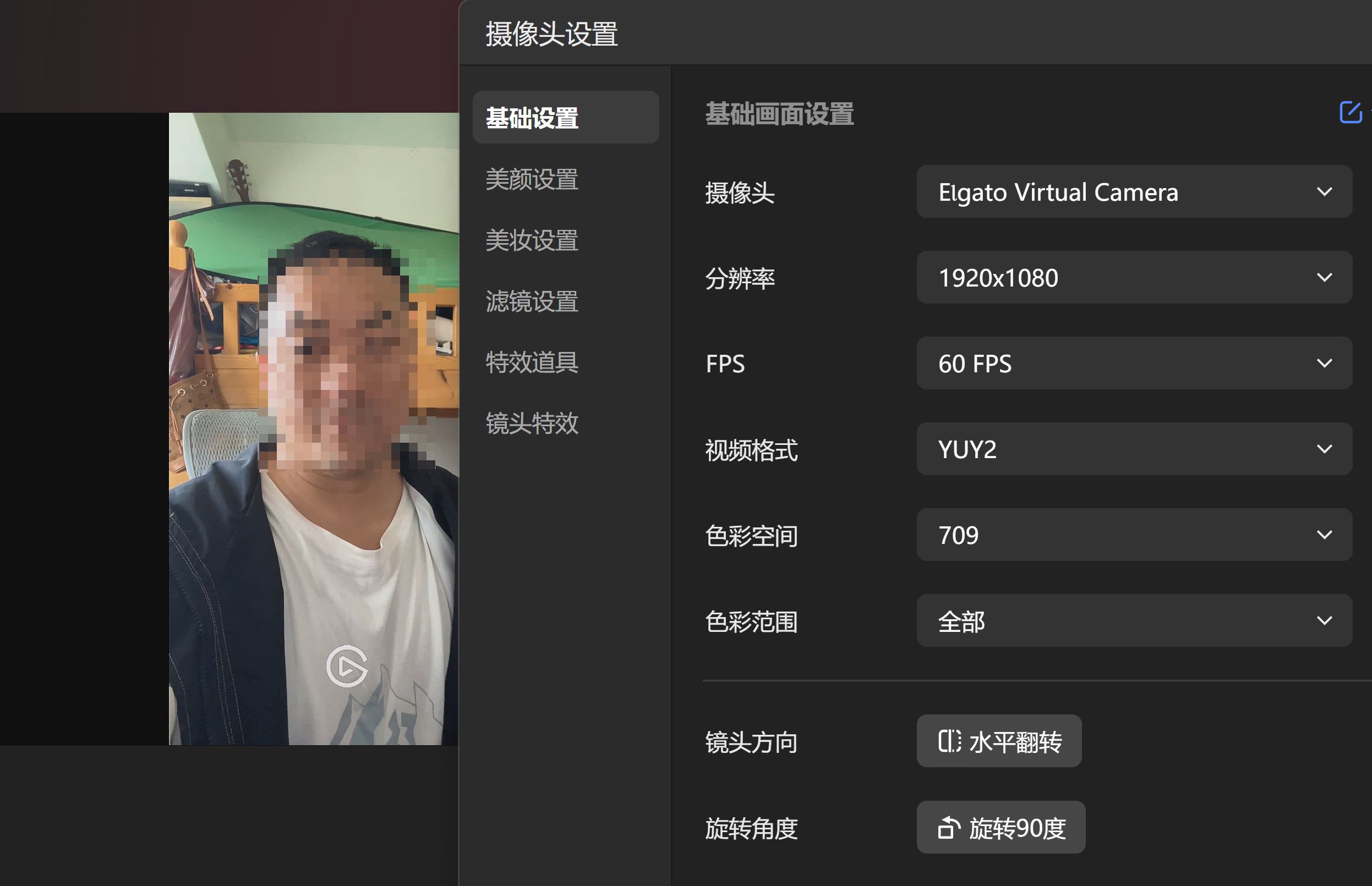 这个软件可以设置elgato家的所有摄像头,当然iphone上安装的epoccam也是可以的。