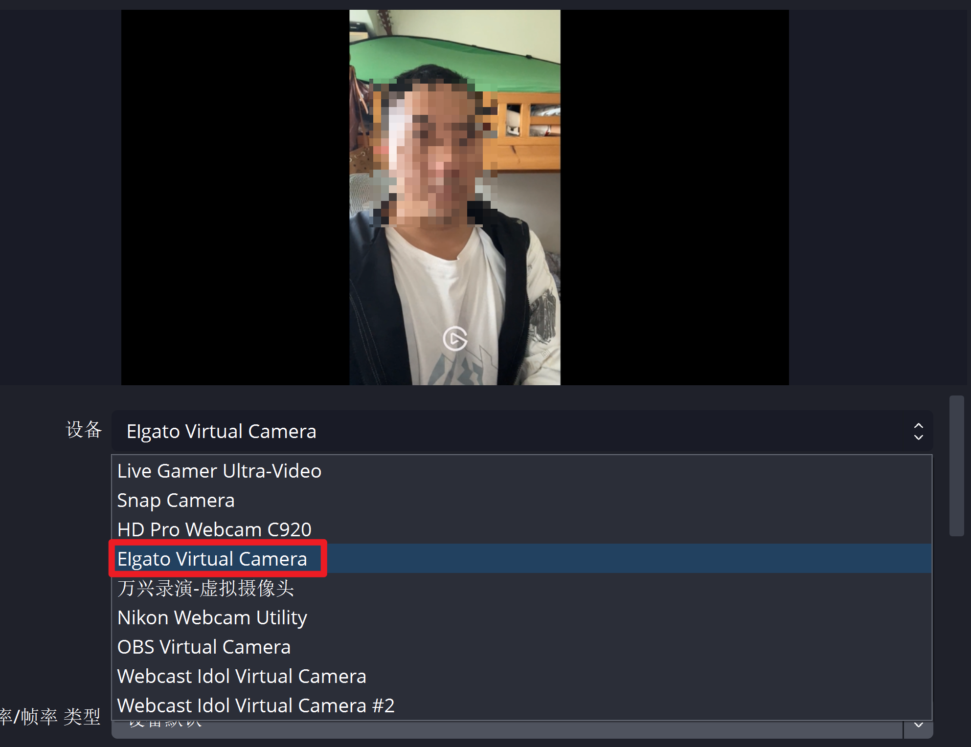 Elgato Camera Hub会自动在电脑上创建一个虚拟摄像头,在其他软件中就能选择这个摄像头了。