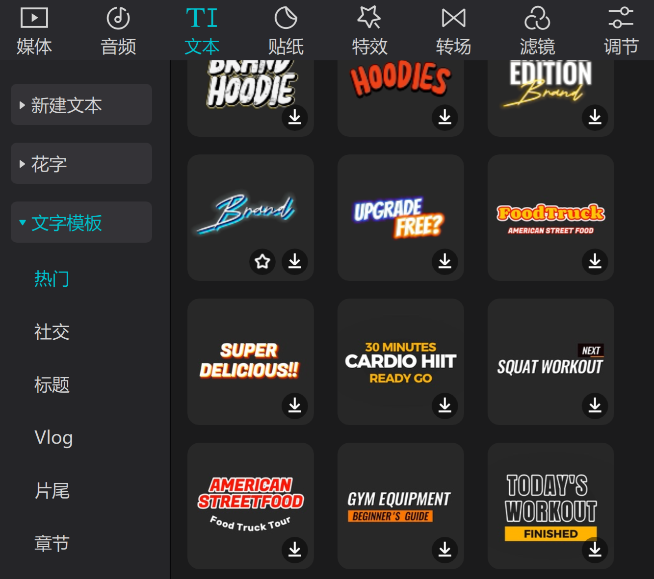 不管是贴纸、文字模板、特效、滤镜,还是音频素材,可全是免费的啊!