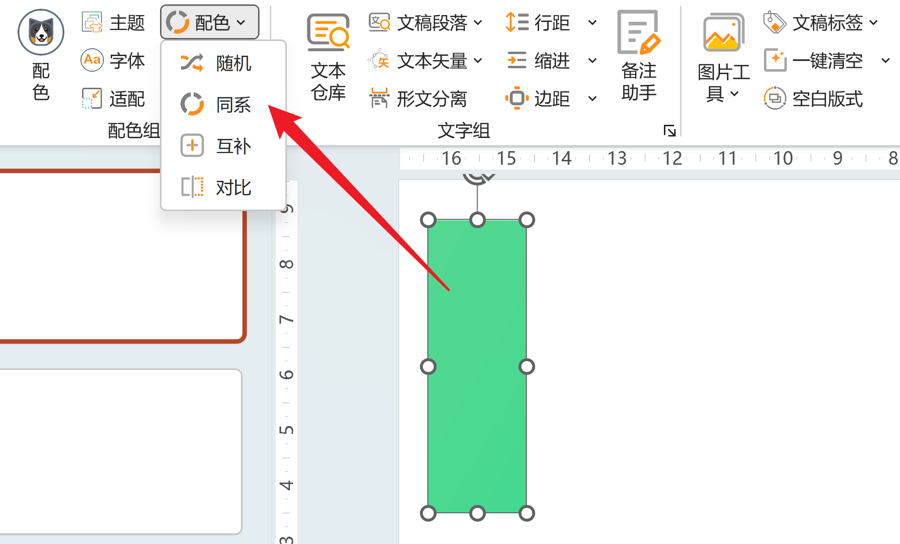我们还能选中一个色块后,根据这个色块生成颜色。