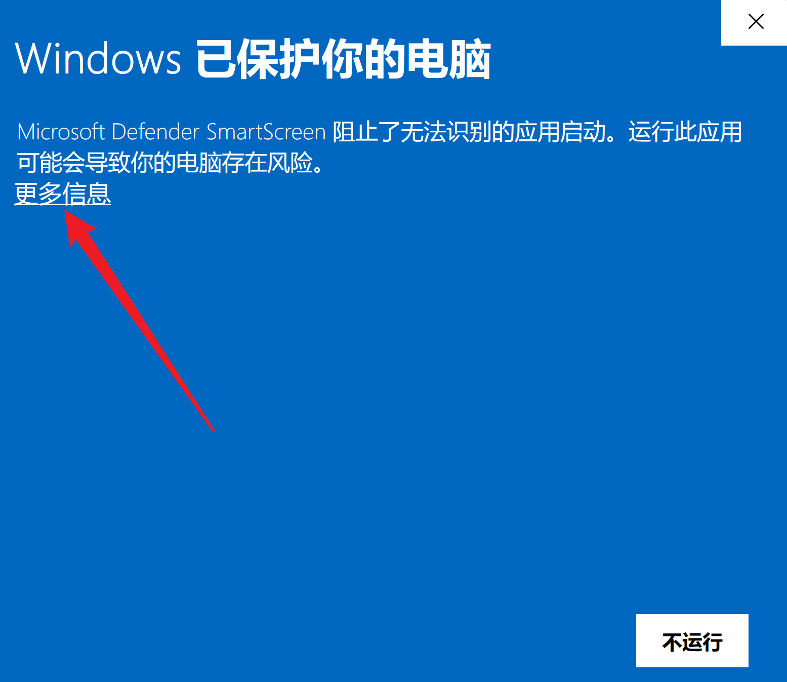 如果运行软件过程中,出现下面窗口,点更多信息即可解决。
