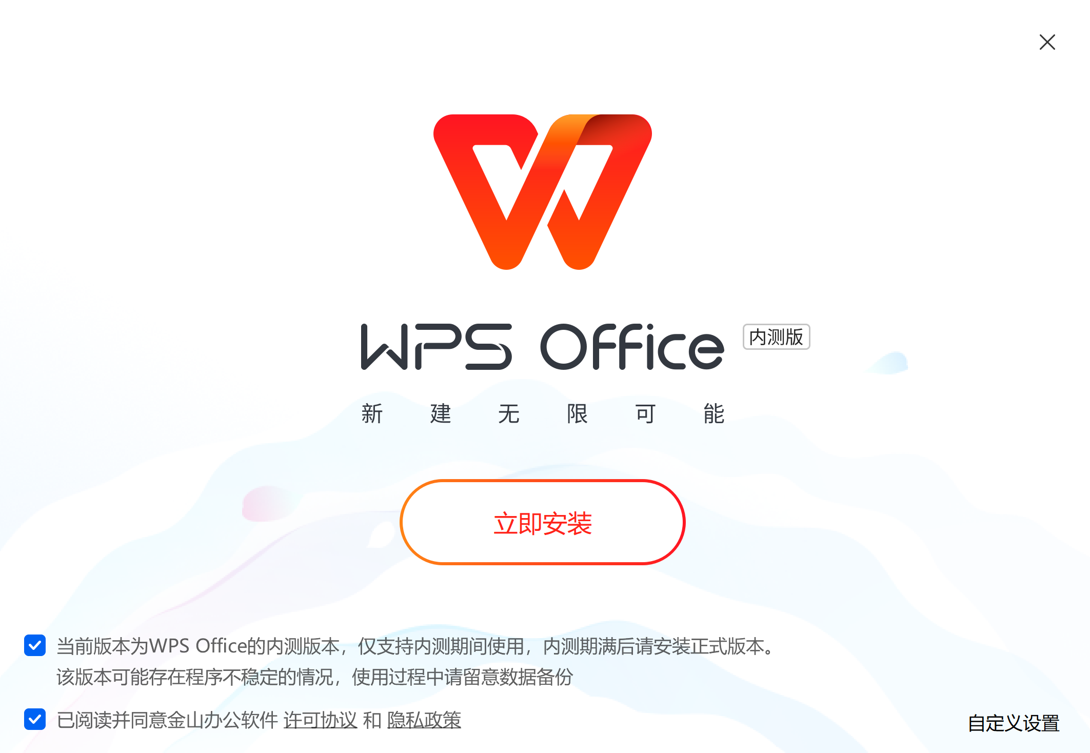 今天,给大家弄来了WPS测试版,安装即可使用。
