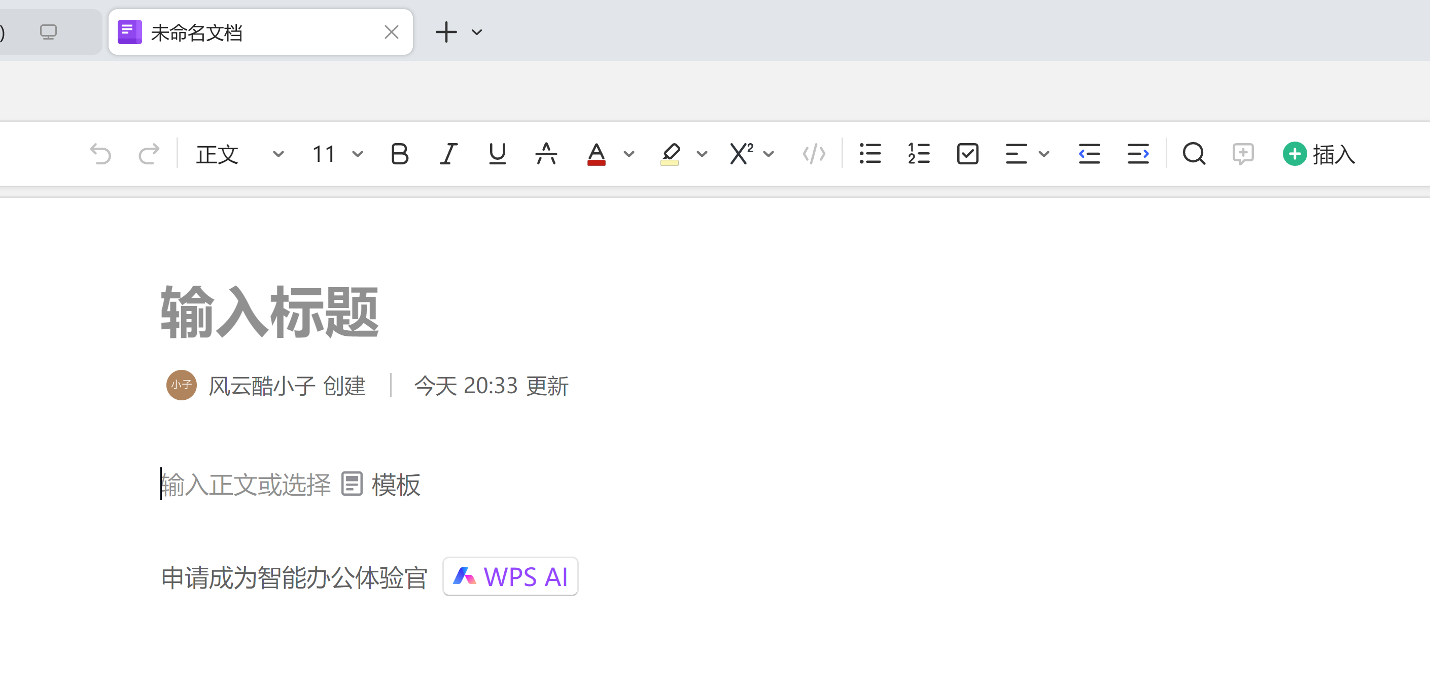 注意:Ai功能不是在普通的文档中使用的,只能在“轻文档”中使用!