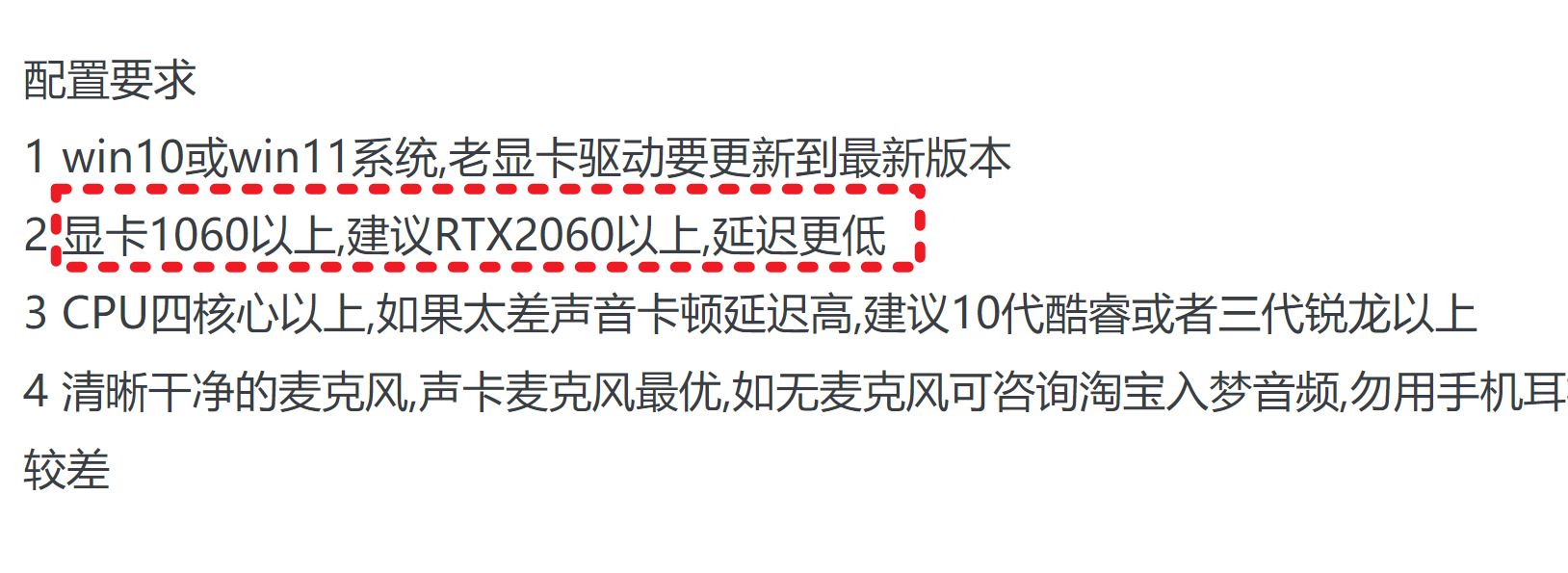 我自己电脑是 3060Ti 显卡,软件介绍里面说的建议1060以上;但选择这以上是为了延迟更低。