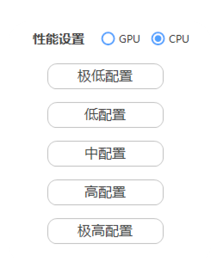 在软件的界面中,可以选择使用CPU和GPU的性能。
