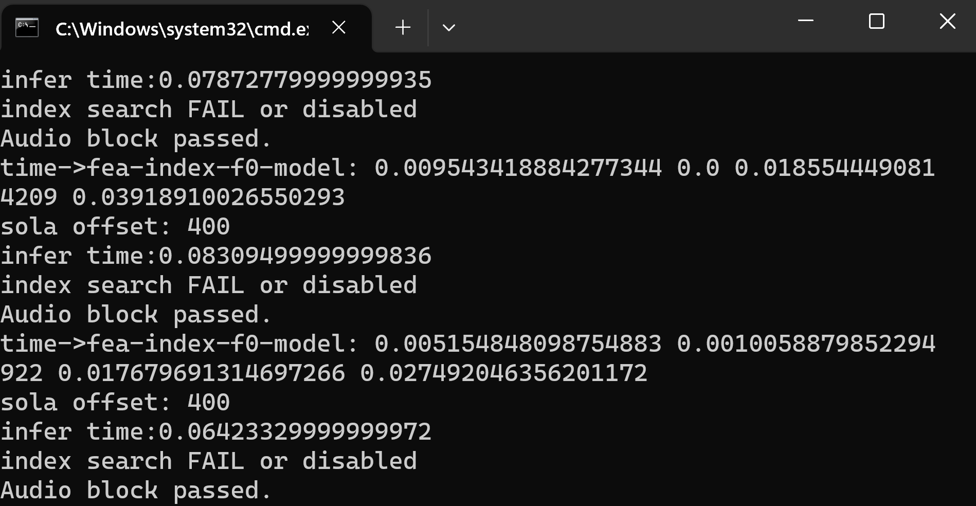 你也看到了,上面的命令窗口一直在实时处理你的声音;这个处理过程是需要时间的。