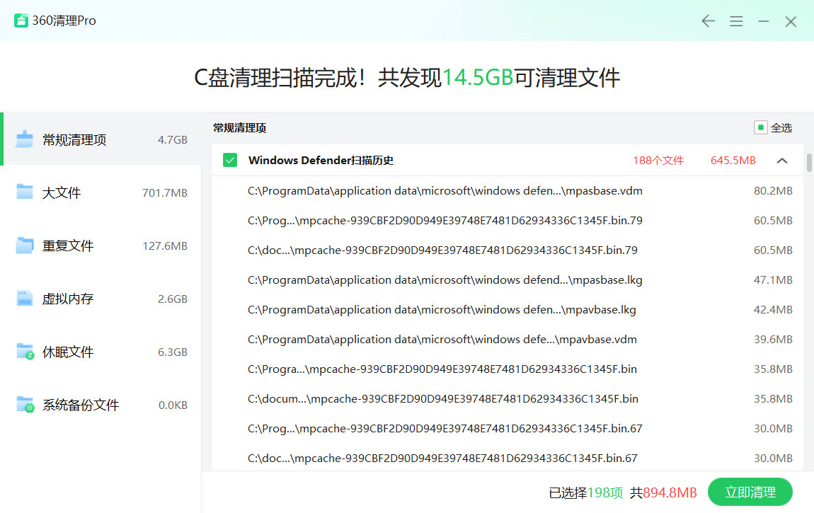 它的扫描是比较全面的,这样才能好好地给C盘进行大扫除了。