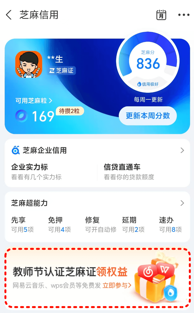 建议提前在支付宝-芝麻信用中,做好教师认证,然后下面是活动界面,可以直达。