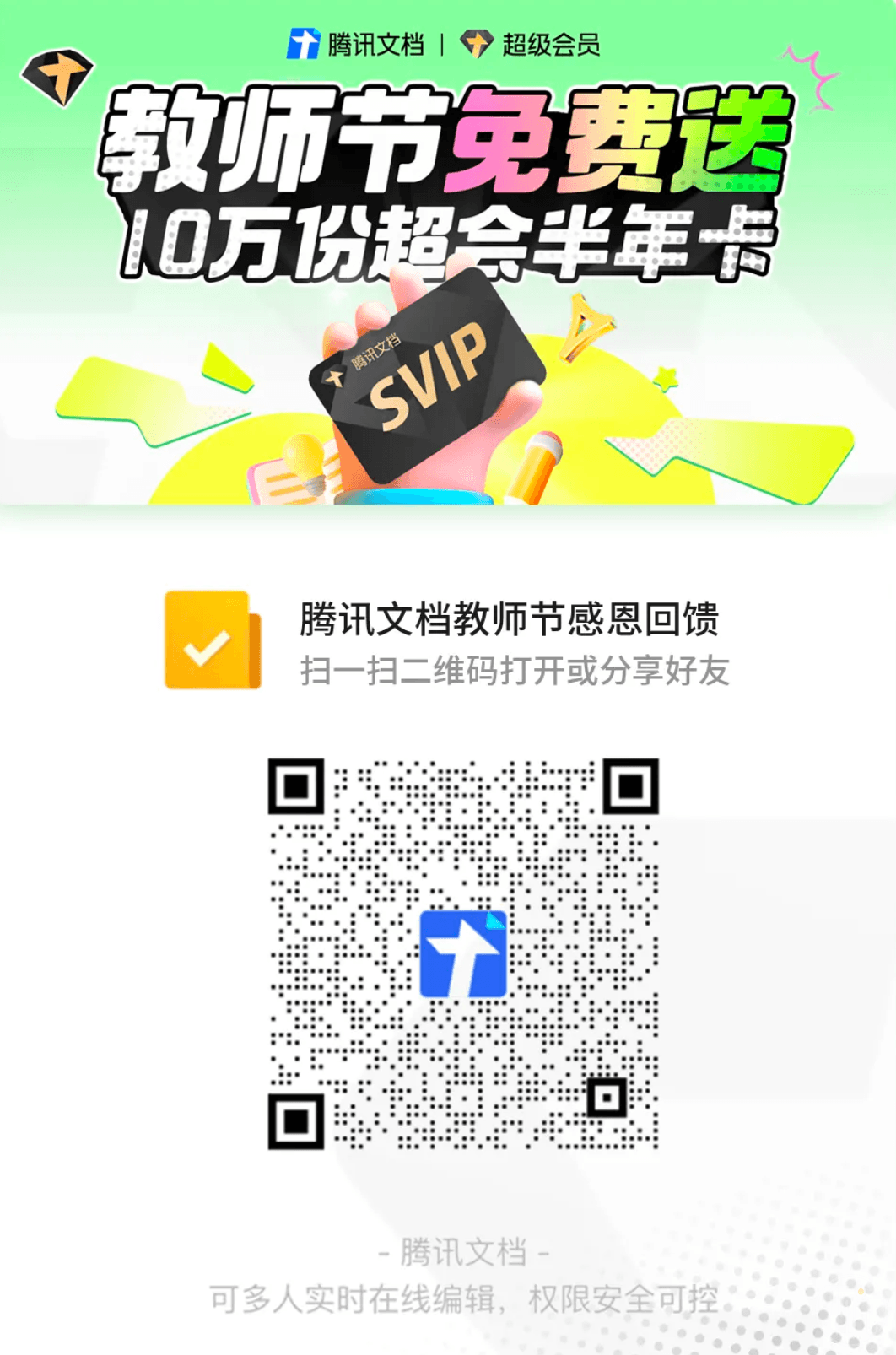 活动期间,老师在下方收集表填写完成申请信息,并上传“教师资格证”原件照片,审核通过后将弹窗提示跳转会员中心查看到账情况。上传的个人信息只用于校验身份,腾讯文档将对用户信息进行严格保密不做他用。