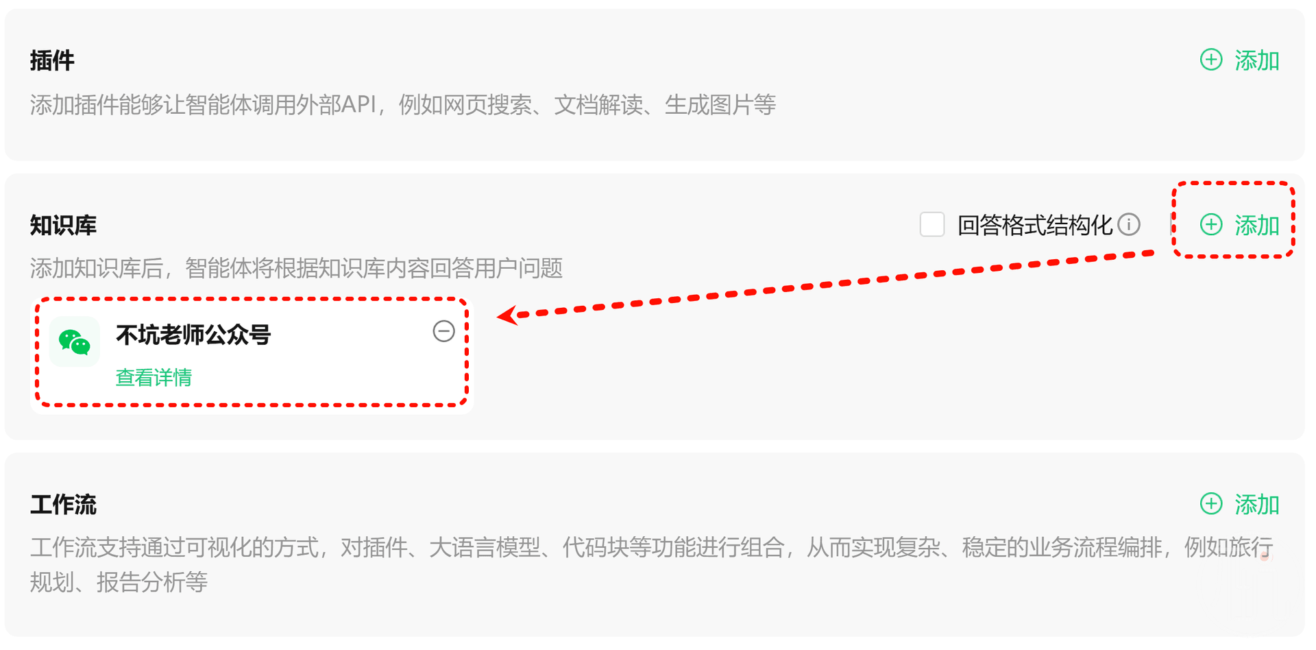 所以,整体来说就添加了一个以公众号文章为内容的知识库,我的智能体就创建好啦!