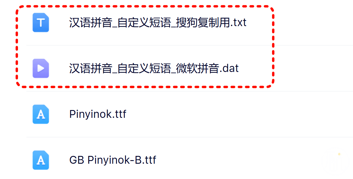 给大家准备了2个文件,这里面装的是自定义短语,把它添加到对应的输入法中就能实现快速打带声调的字母了。(可以在本文末下载到这2个文件)