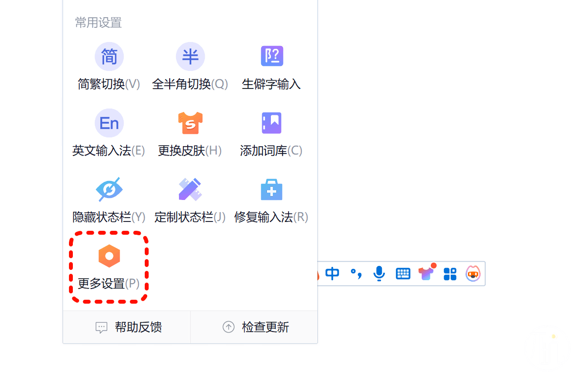 在输入法的窗口上任意位置点击右键,进入到更多设置: