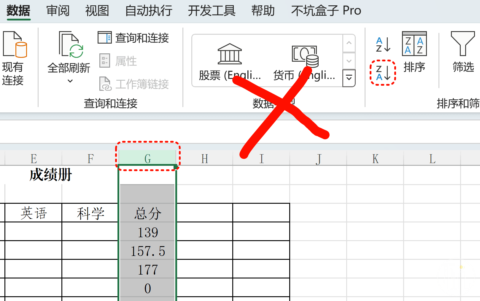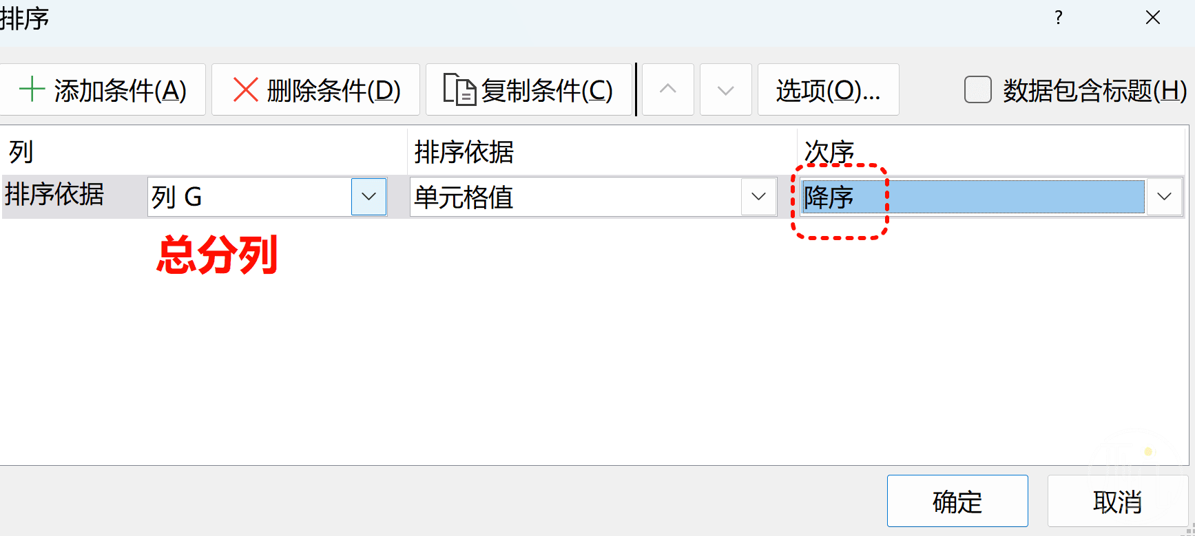 由于这个表有表头,你不能直接点选某一列后,快速进行排序。