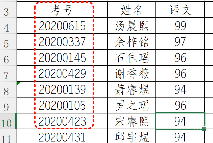 接下来我们应该做的就是筛选自己班的名单,但在数据中并没有班级这一列,唯一能看出班级的就是考号。