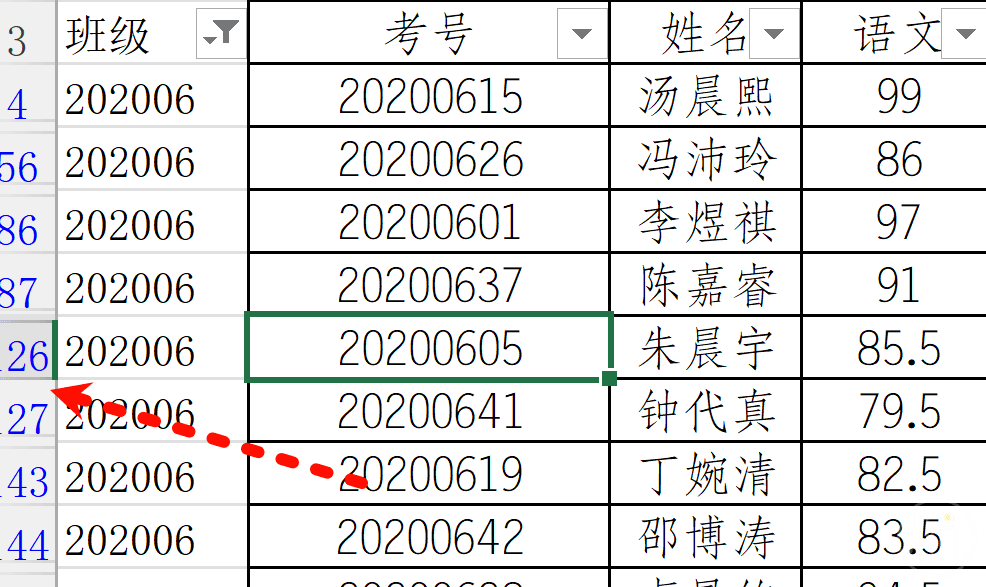 但如果根据这一列来筛选,我们得一个一个选择全部自己班的考号,太浪费时间了。