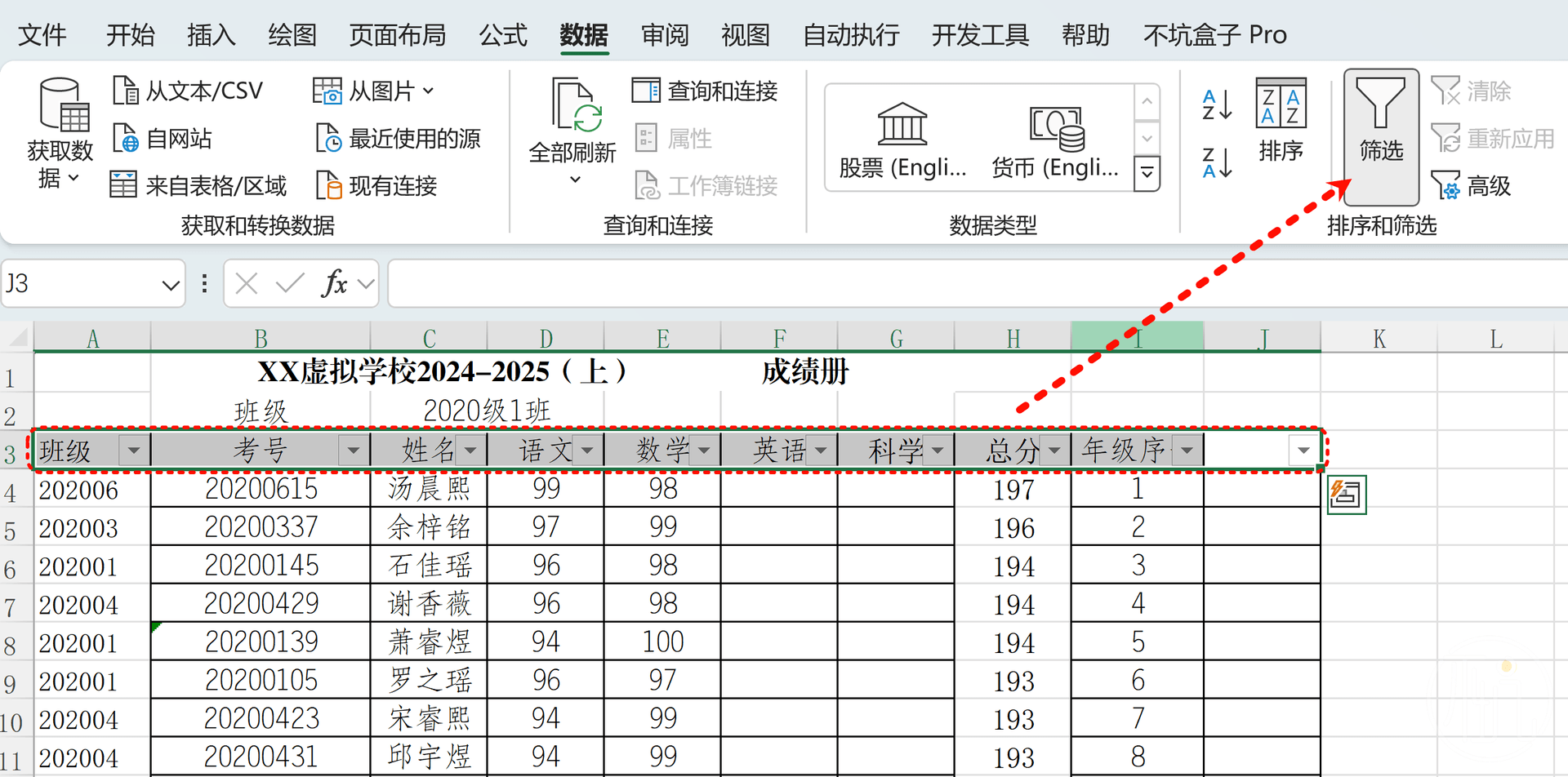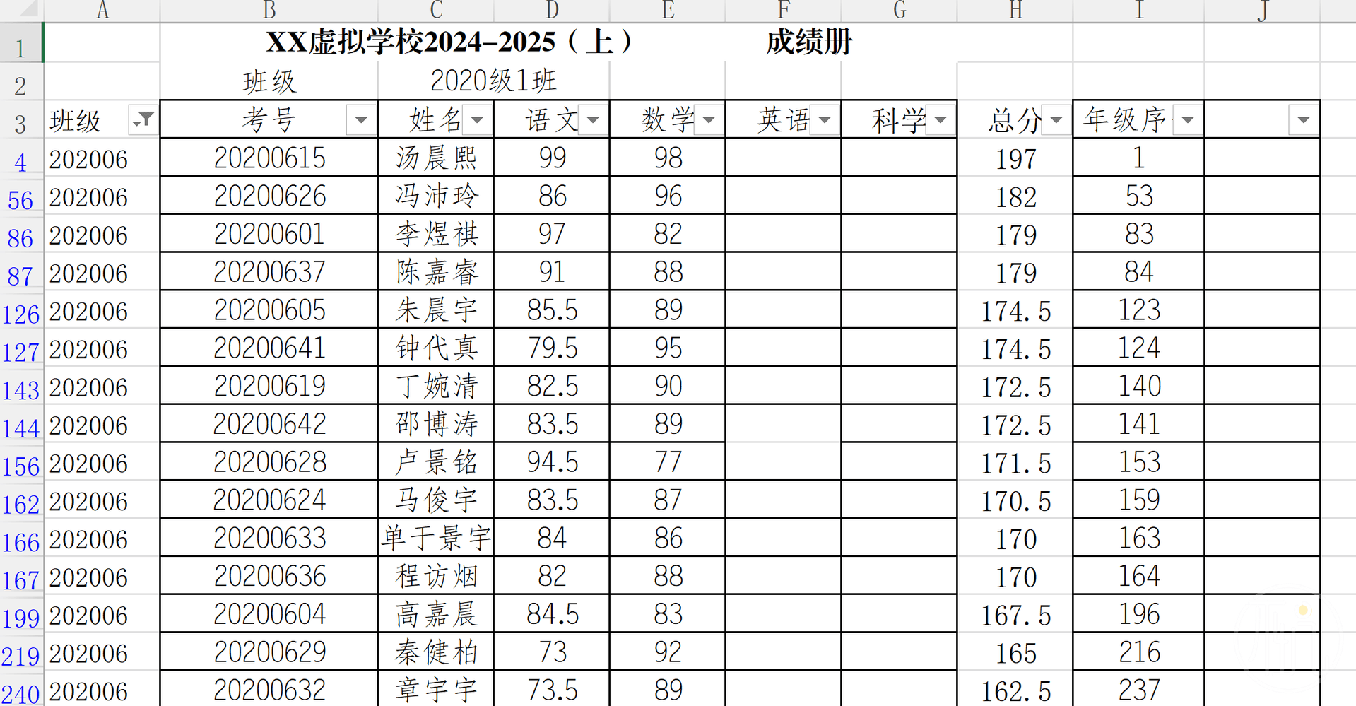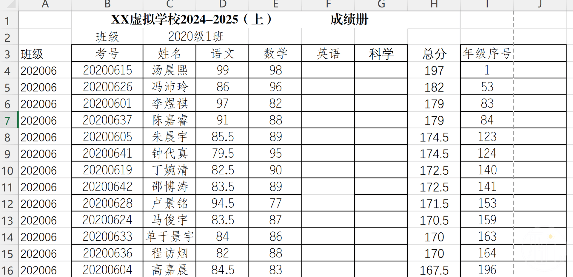 你就得到了一个属于自己班的.xlsx表,并且里面有“每个学生在年级的序号”。