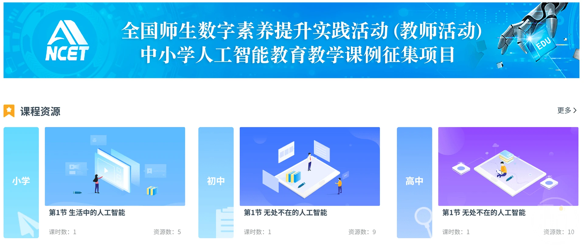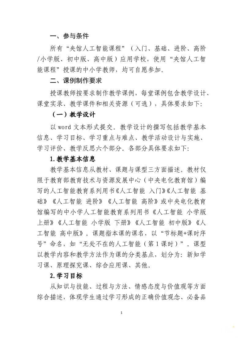 同理,“中小学人工智能教育教学课例”所需要的内容也是纯人工智能教育的,而不是将人工智能融入其他的课堂。