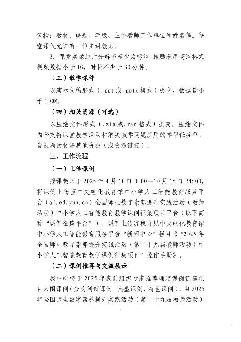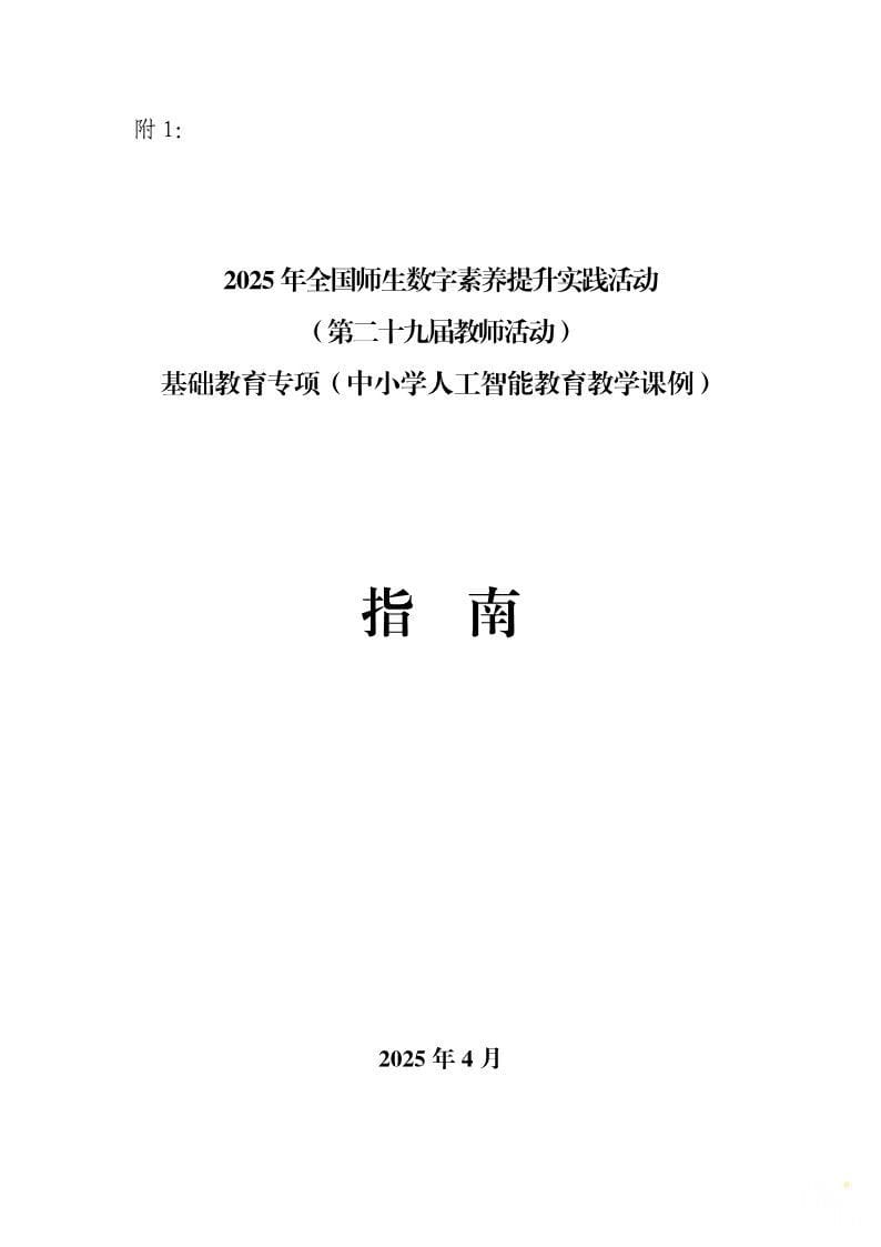 “中小学人工智能教育教学课例”是2025 年全国师生数字素养提升实践活动(第二十九届教师活动)的一个基础教育专项活动。