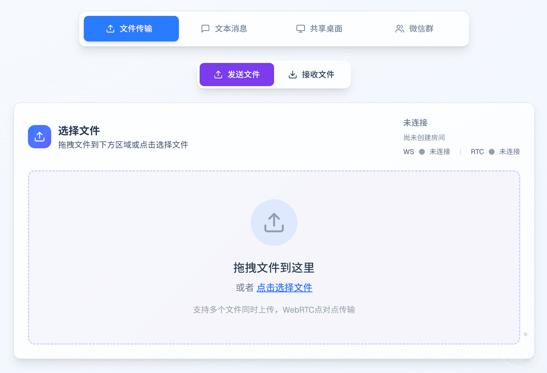 服务器的作用是来连通上传方和接收方的,但文件不会上传到服务器,而是直接从上传者的电脑传输到接收者的电脑。