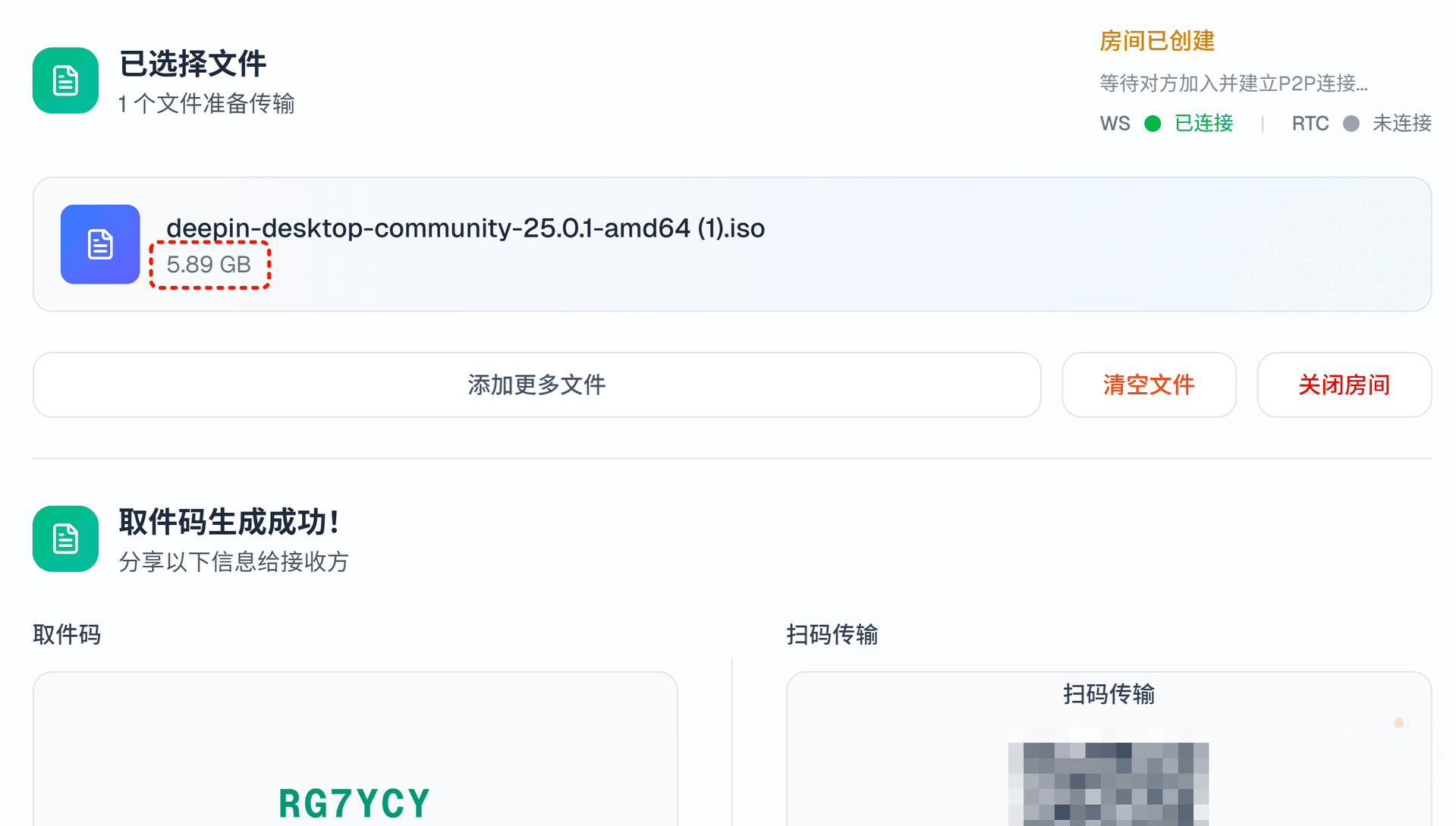 这种方式来共享文件,不是持久性的,这种临时的房间很脆弱。上传的人要一直保持这个页面不能关,一旦关了,下次就是一次全新的共享了。