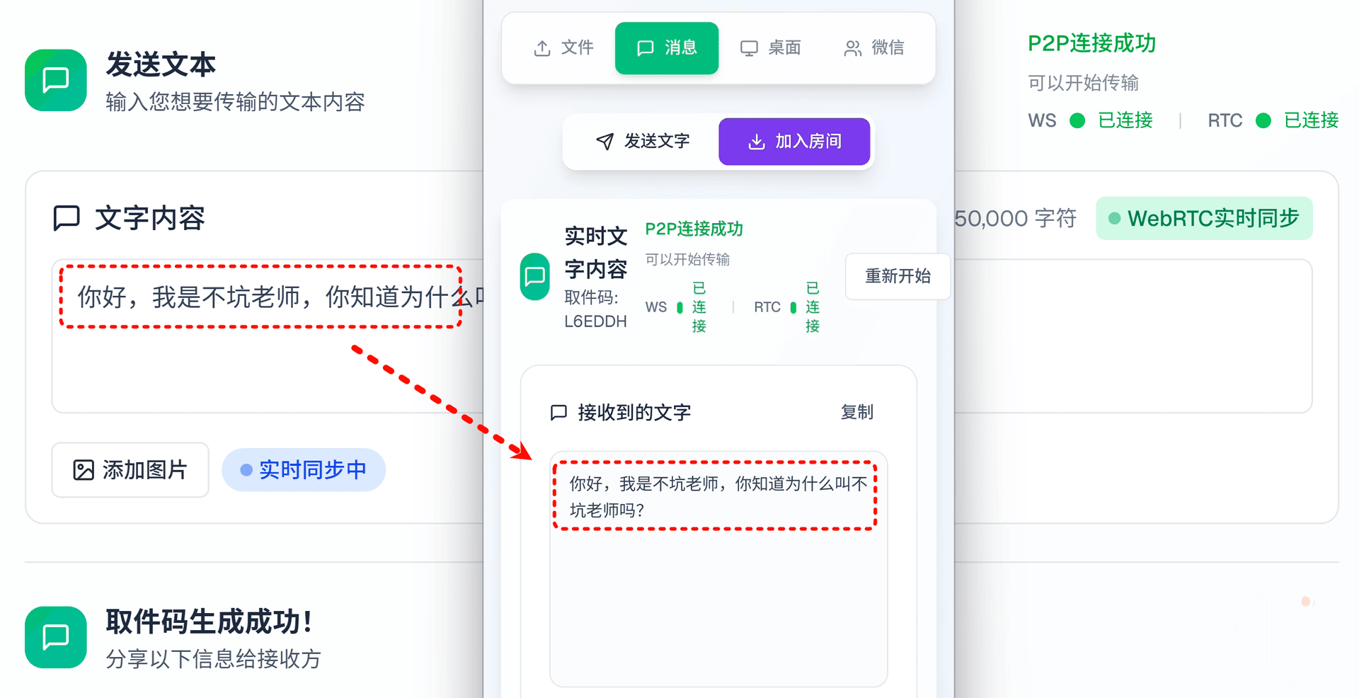 其实,传输文本对服务器的压力并不大;但用点对点的方式,能实现0延迟(几乎)。