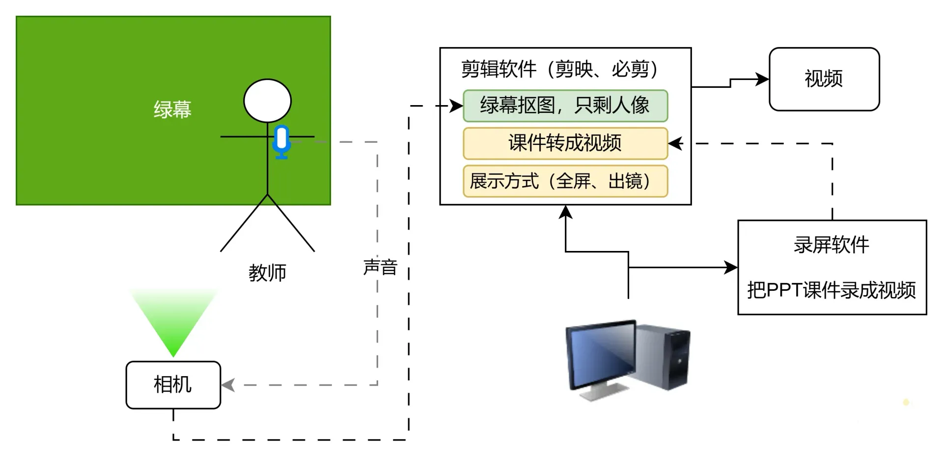 上面已经把录精品课能用上的大致方法全总结了,很多细节上的操作可能需要去挑战,比如:相机的架设、后期的剪辑、声音的处理、PPT画面同步教师的讲解等。
