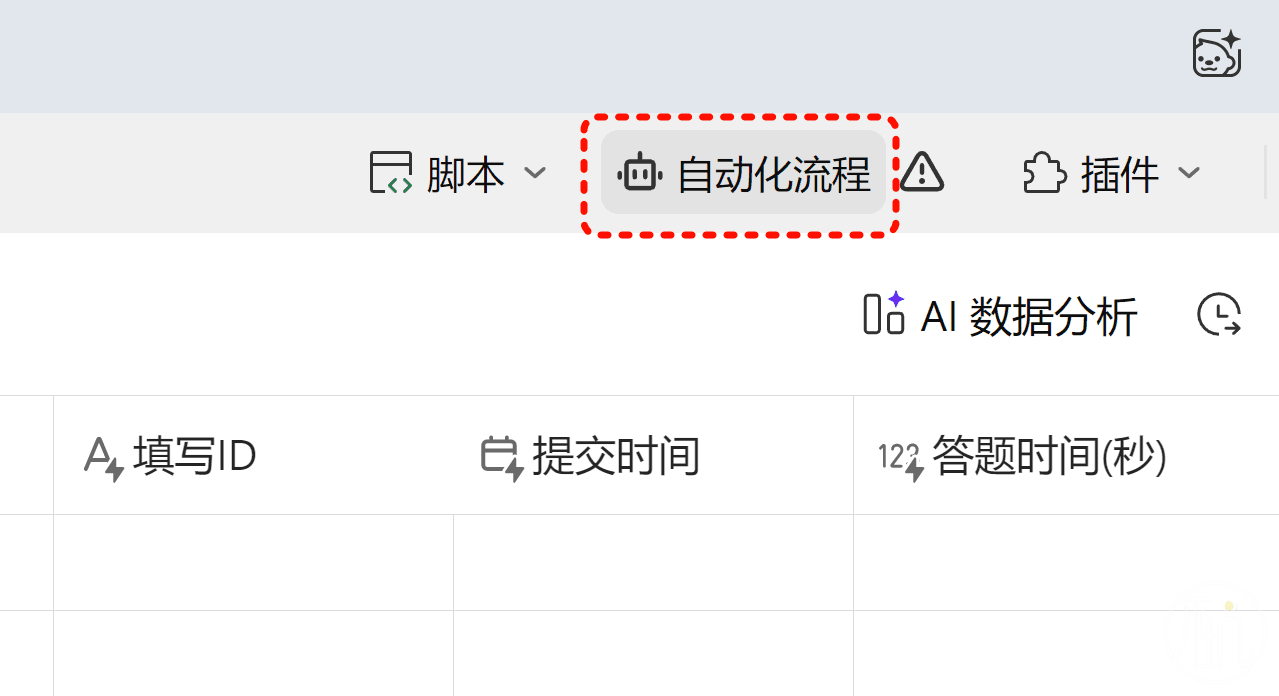 如果你动手能力强一点,可以点击右上角的“自动化流程”,这儿可以实现多维表格和别的软件联动。
