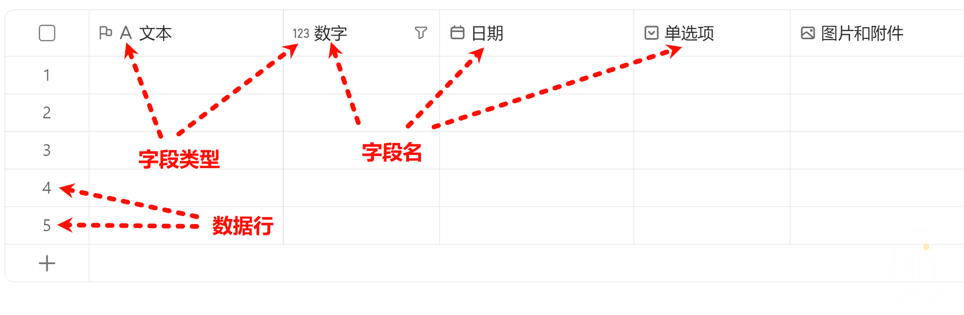 字段——其实就是列标题。它前面的那个小符号,是字段的类型。