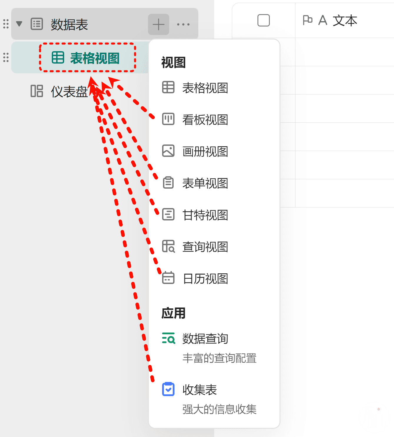 在多维表格左边,可以添加很多种视图。注意:这些视图都和那个主要的数据表格是关联想来的。