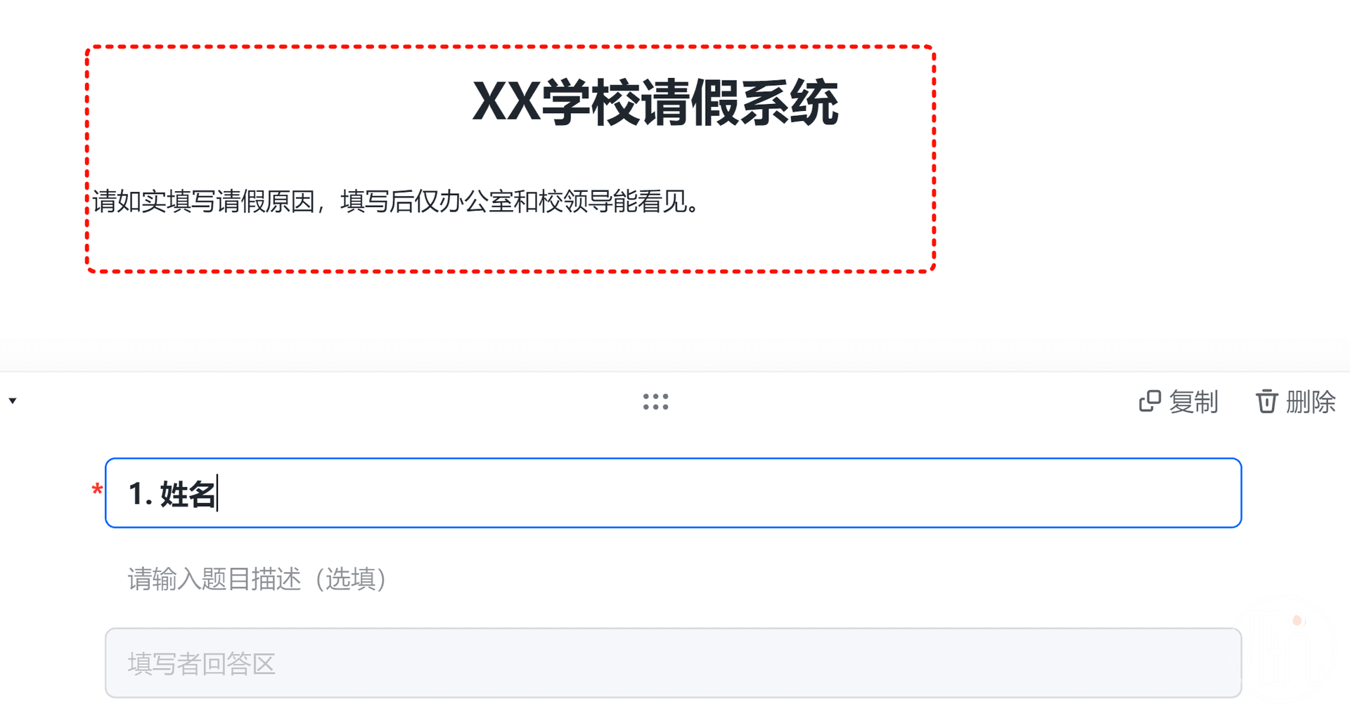 我们需要修改它的标题、描述,因为这个界面就是普通员工请假时看到的界面。