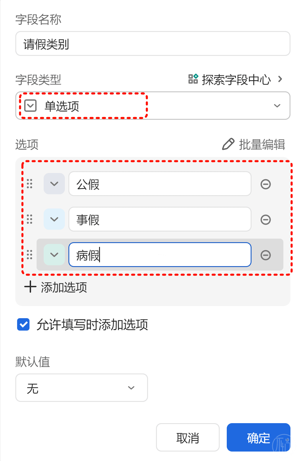 把默认表格中的那些不需要的列删除掉,改成你们请假需要用到的: