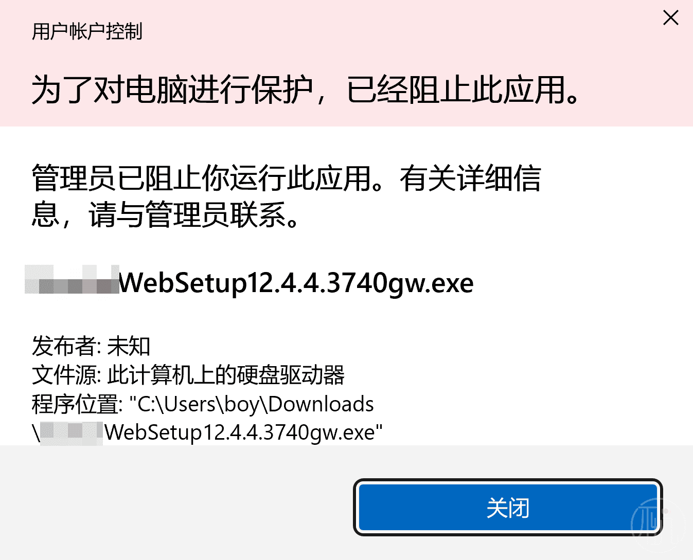 当你的电脑中,下次安装这些软件的时候,就能看到这样的提示,我随便下载了一个安装包来举例: