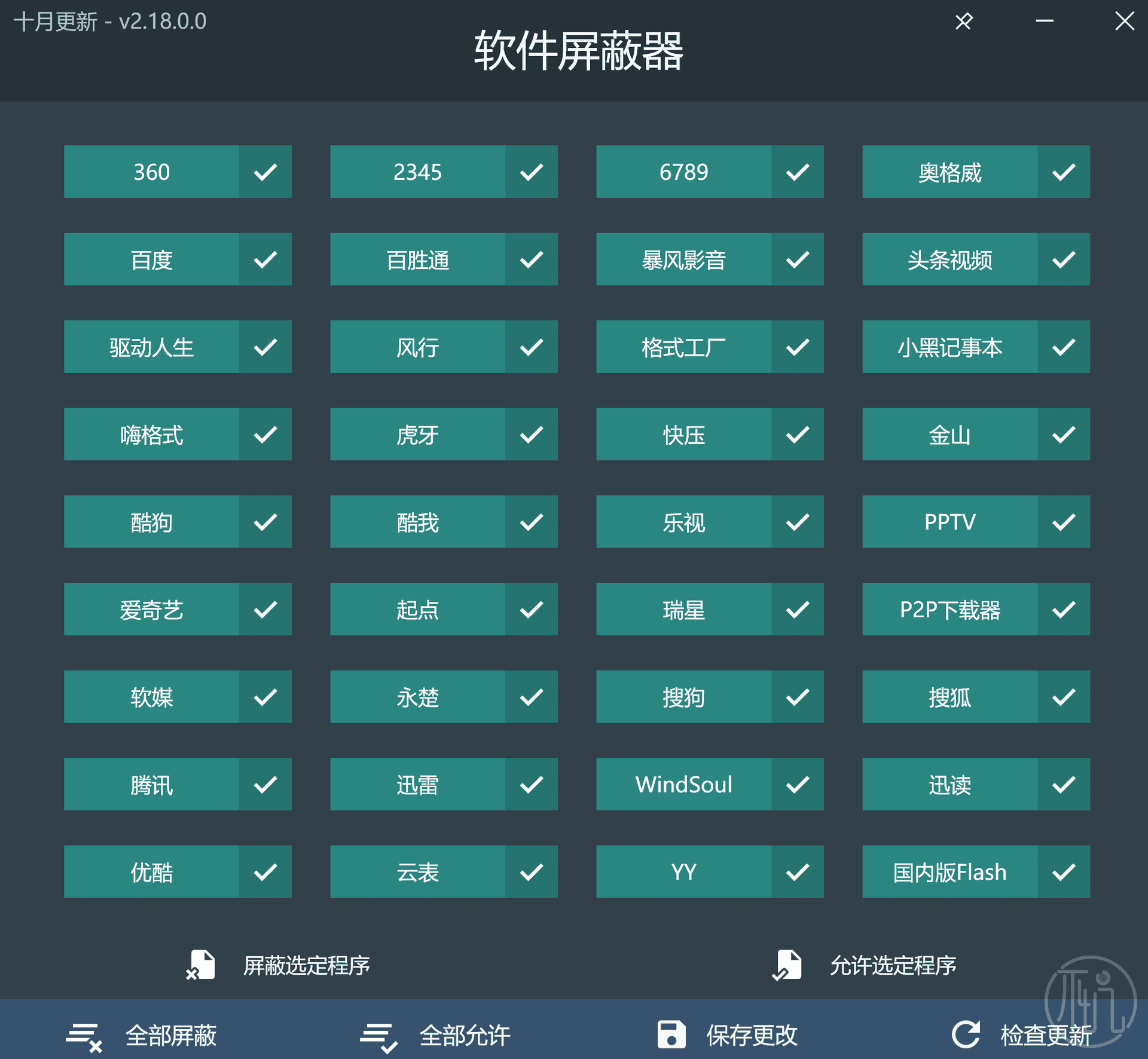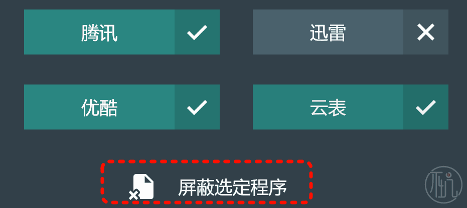 界面上列表中的文件是有限的,可能你想屏蔽的软件没出现在里面,看这个按钮,猜猜是干啥的?