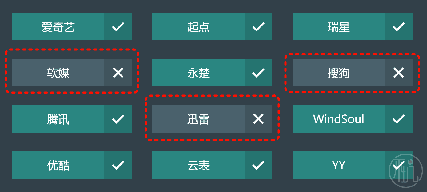 界面中是给大家列出的一些常见的软件的列表,点击你不允许未来出现在你电脑中的软件,使它变成“❌”: