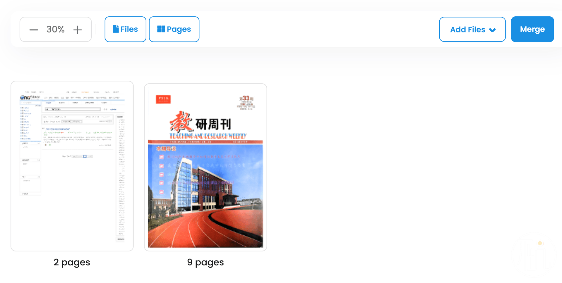 一些资料,我们还需要把多个PDF文档合并在一起。比如:你在平台上检索的论文结果页和论文所在的杂志,就需要合并在一个.pdf文件中上传,你的课题各个阶段分散的资料要合并到一个.pdf文档中。